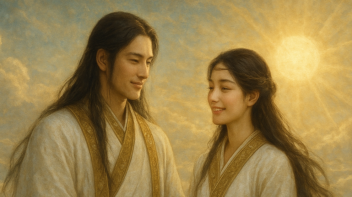 伊邪那岐尊と伊邪那美命とはどのようなお役目を果たされたのでしょうか?生成AIを用いて作成した美しいグラフィックをぜひご堪能ください。