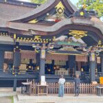木造平屋建てで、檜皮葺。これだけ華美な装飾が施されている拝殿は珍しいですね。初めて訪れたことに対してご挨拶をし、武運をお貸しくださいと祈願しました。
