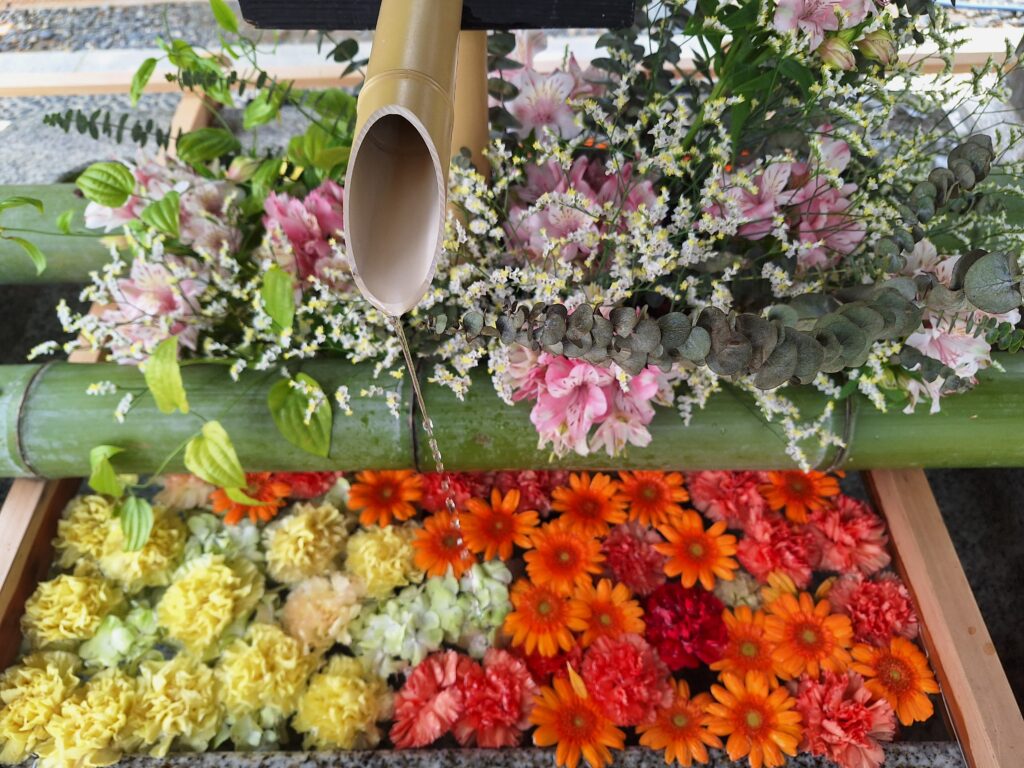 また、手水舎に花が浮かべてある「花手水」や、その神社で湧き出ている「御神水」を汲んで帰ることが出来る神社も存在いたします。