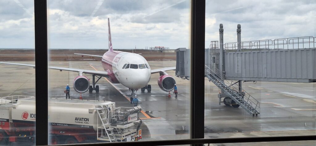 昼過ぎの便で新潟空港から関西国際空港まで移動します。片道約1時間の道のりです。