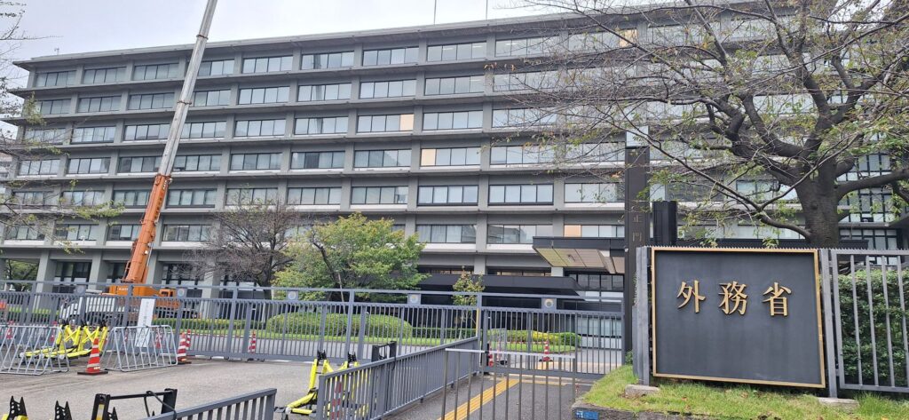 国会議事堂の正門前から東に5分ほど歩いて外務省の前まで参りました。
