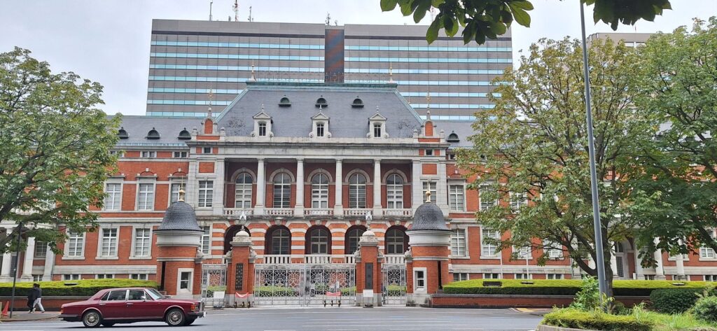 外務省を後にして、皇居へ向かう幹線道路に沿って進んでいくとこちらの法務省へと辿り着きます。報道でも目にすることが多い、歴史的なレンガ造りの建造物です。