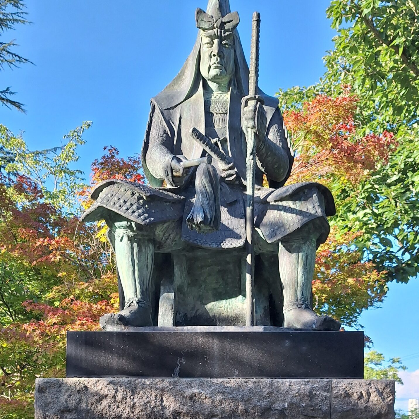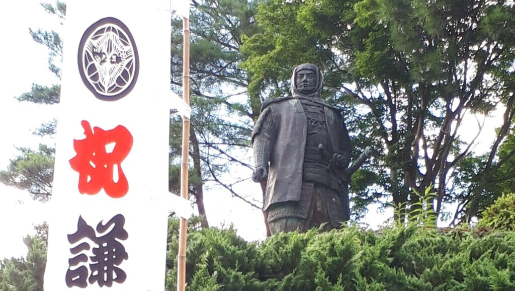 御本殿を後にしてもと来た道を辿ります。城址内に上杉謙信公が私に正対するように鎮座していらっしゃいました。
