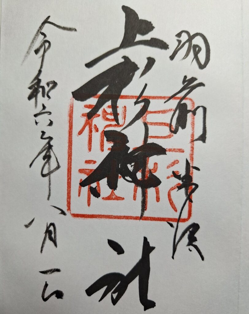 強弱のある筆遣いをした無骨な印象の御朱印です。社務所が閉まる直前に訪れて、なんとか御朱印をいただくことに間に合いました。