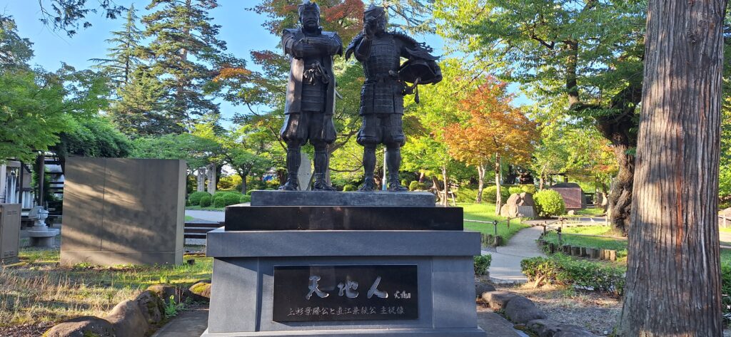 NHK大河ドラマの「天地人」の題材となった直江兼続公と上杉景勝公の銅像にお見送りしてしていただけます。