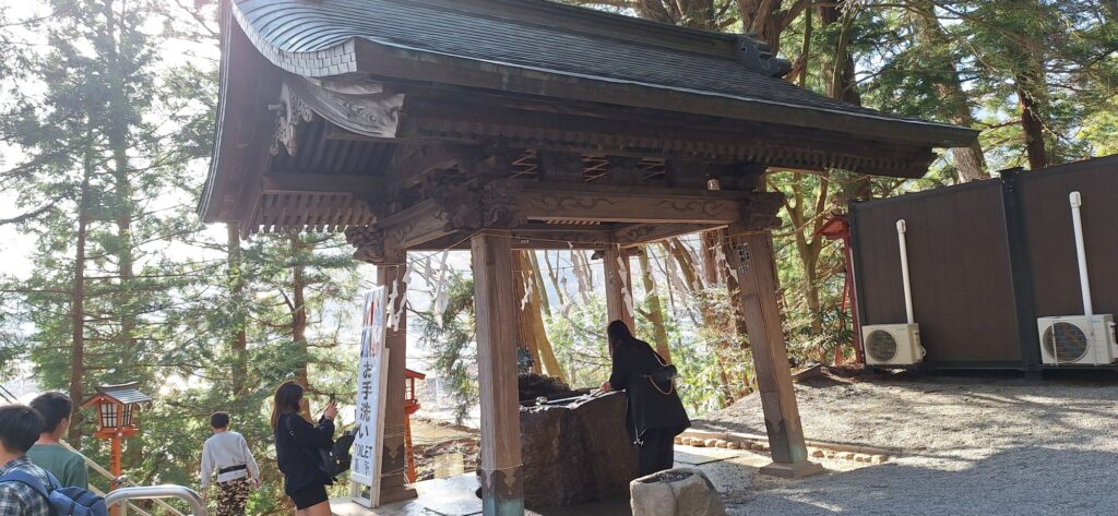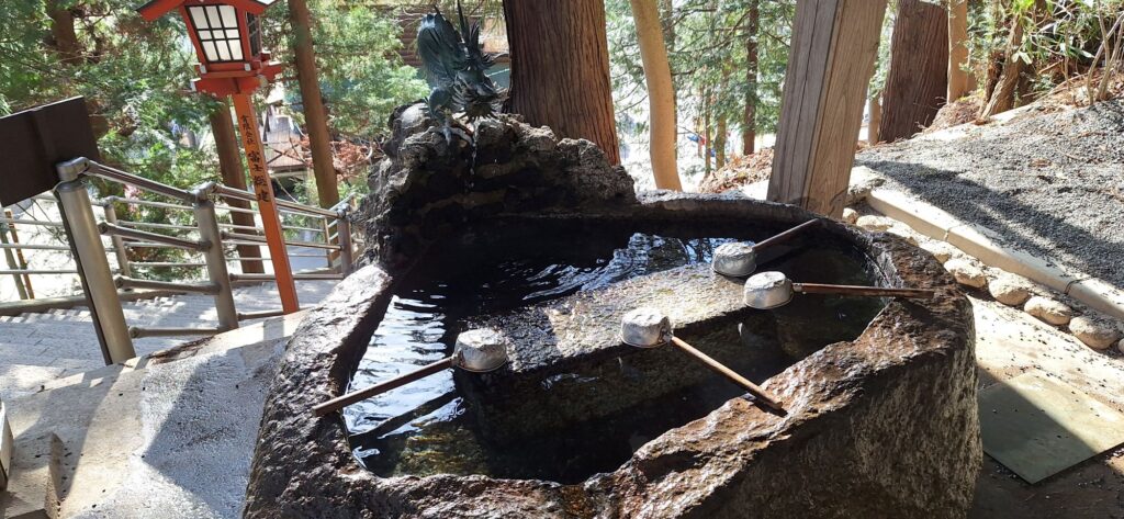 こちらの無骨な石造りの手水舎の上で荒々しく佇まれている龍神様のお姿も、観光客の皆様の写真に収められることがあるのでしょう。
