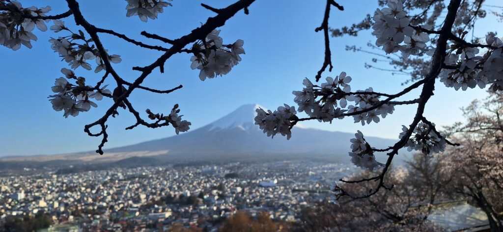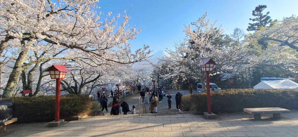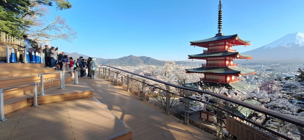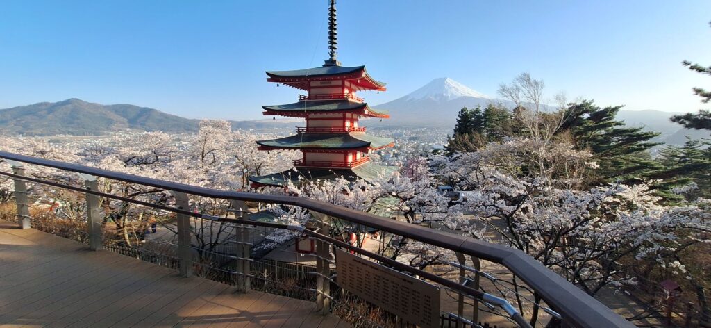 新倉富士浅間神社は、富士山と桜と五重塔の美しい景観で知られ、特に春の桜の季節には多くの観光客が訪れます。安産や縁結びのご利益があるとされ、富士山の美しい景色にも触れることが出来ます。