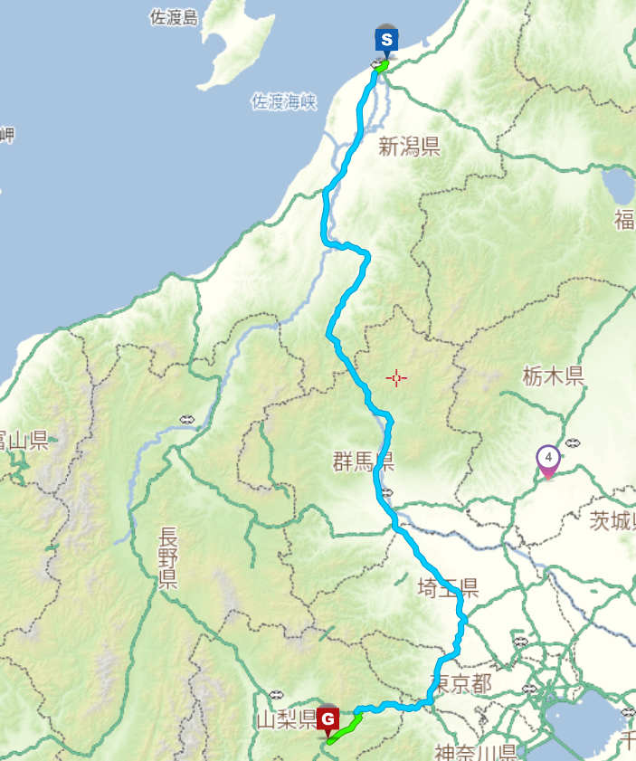 東京側から山梨県へ入り今回の目的地へと向かうルートを通ります。
