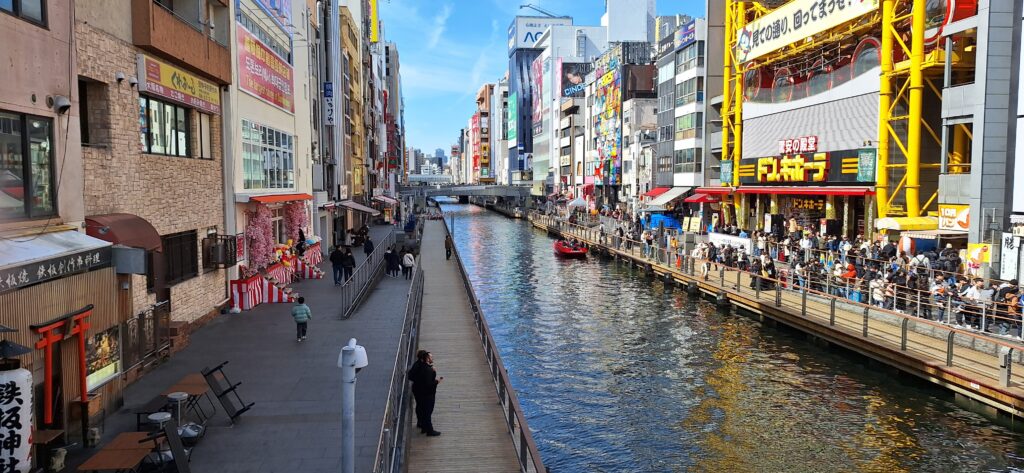 道頓堀は豪商の安井道頓が開削した運河で、大阪城の外堀ではないそうです。こちらは夜に訪れてもいいですよね。