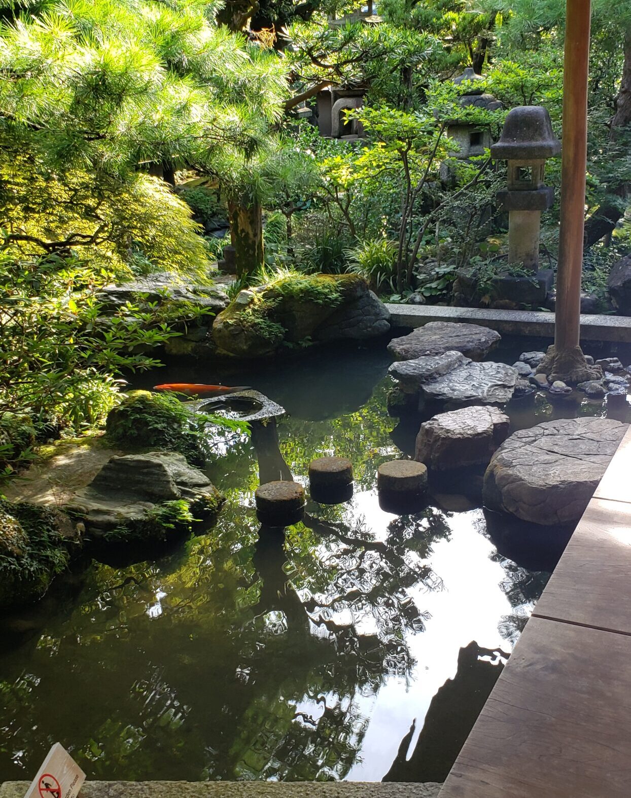 女坂の中腹にある不動滝です。滝壺のある池には鯉が泳いでおり神聖な雰囲気が漂っていました。