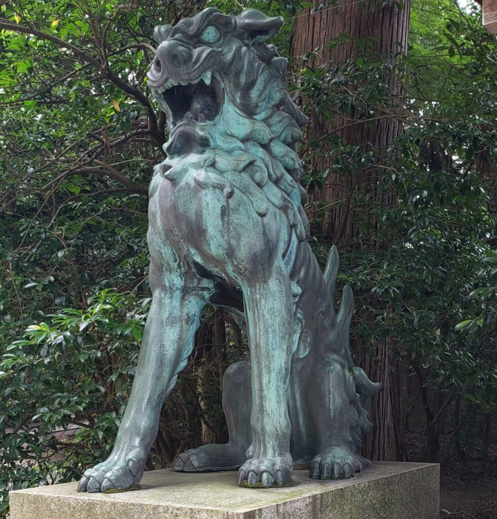 狛犬は「口を開けた阿形(あぎょう)」と「口を閉じた吽形(うんぎょう)」の一対で構成されます。これは「宇宙の始まりと終わり」「万物の源と帰着」などを意味する言葉だそうです。