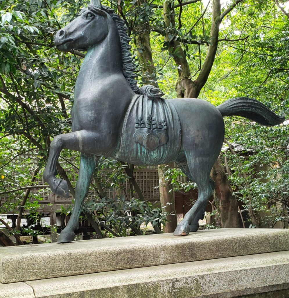 躍動感のある青銅製の神馬の像。非常に美しい姿で残されており、800年前に真鍮されたとはにわかに信じがたいお姿です。