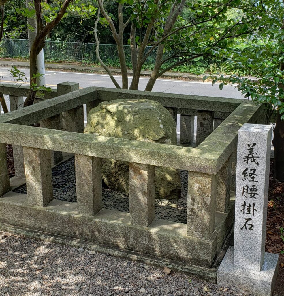 義経腰掛石と呼ばれていらっしゃる石です。源義経が奥州へ落ち伸びるときに金劔宮へ立ち寄られ、こちらへ腰掛けて眼下の景色を眺めたと言い伝えられています。
