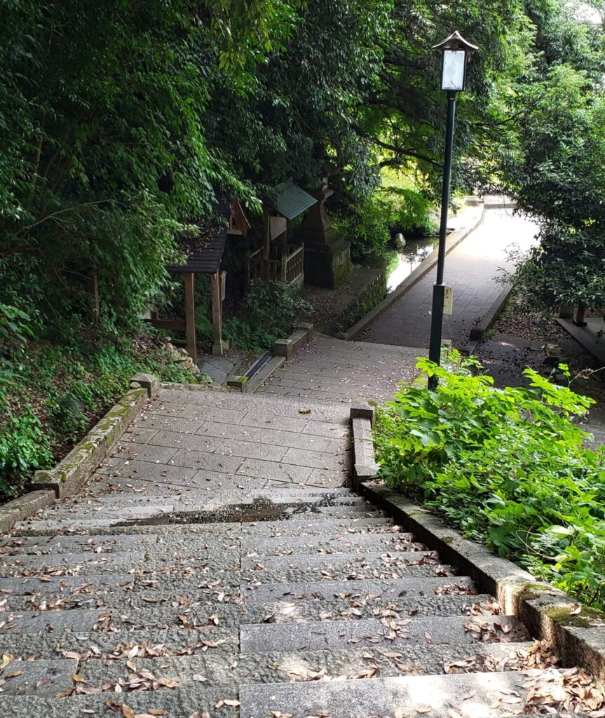 境内の目の前に通っている国道を渡り、こちらの女坂を下ります。