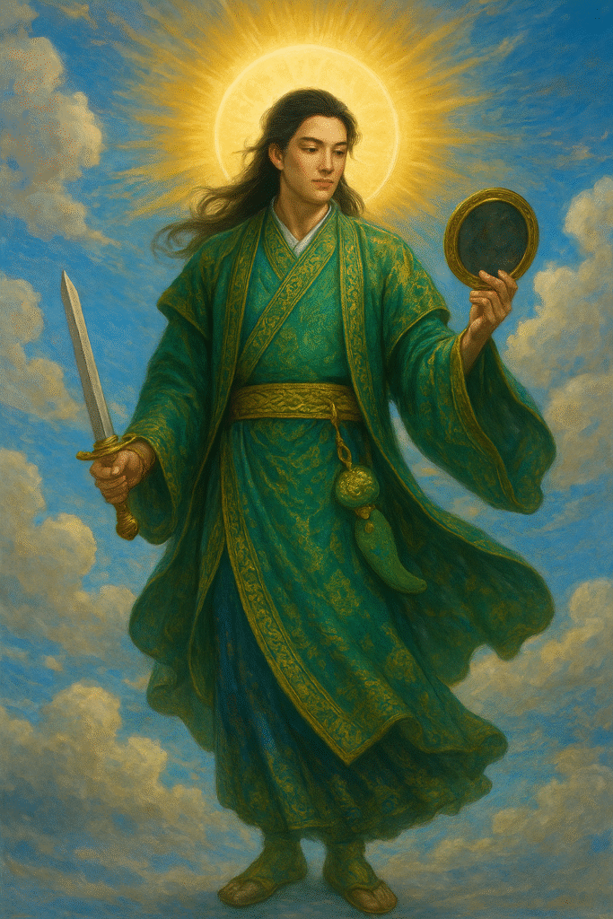 国譲りを果たした後の葦原中国を治めるために三種の神器を授けられ地上に降臨した。